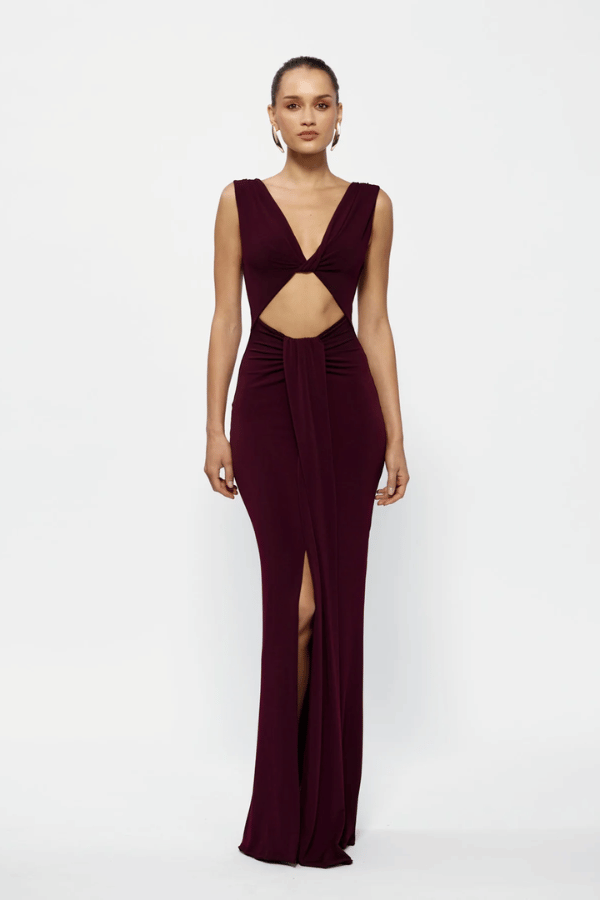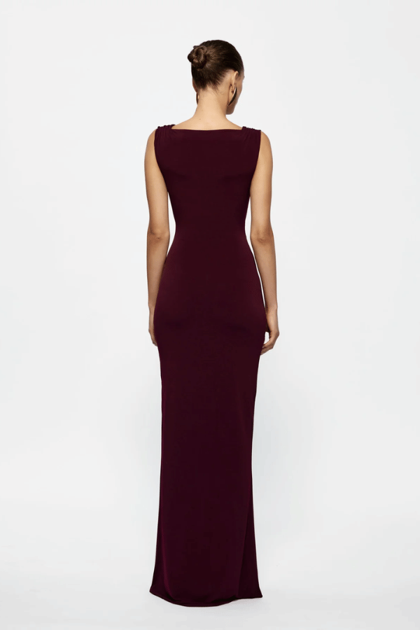 The Faith Dress embodies elegance with its perfectly graceful silhouette. Featuring a flattering V-shaped neckline and feminine accents across the bodice, it seamlessly flows into a maxi skirt with delicate train detailing. Intricate twists and ruching add visual interest, while a cutout beneath the bodice lends a touch of allure. Designed for versatility, the Faith Dress can be worn both ways, making it the ideal piece for intimate celebrations or romantic escapes.