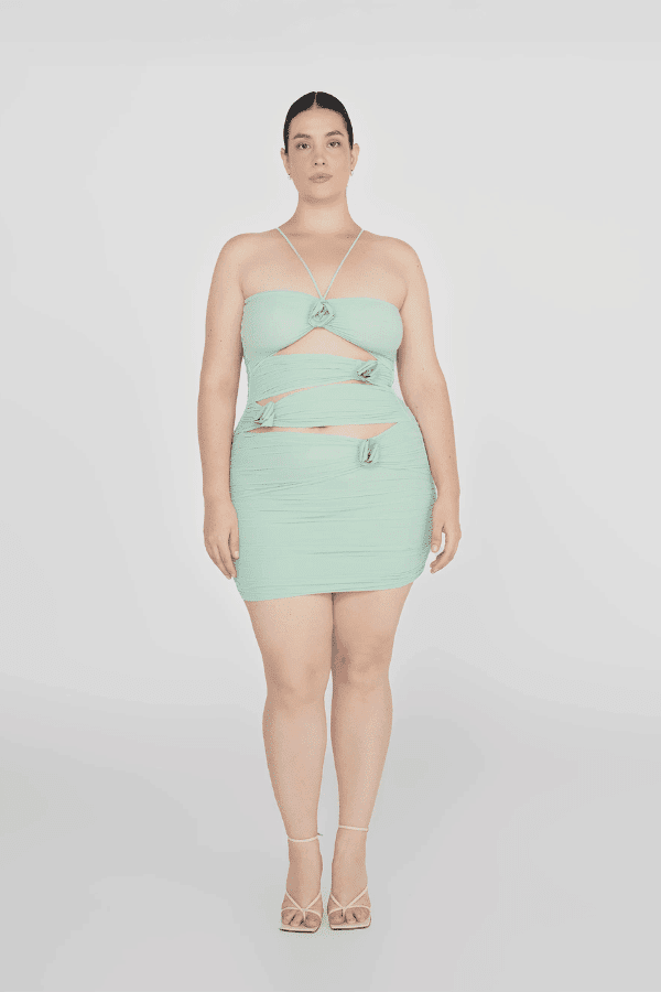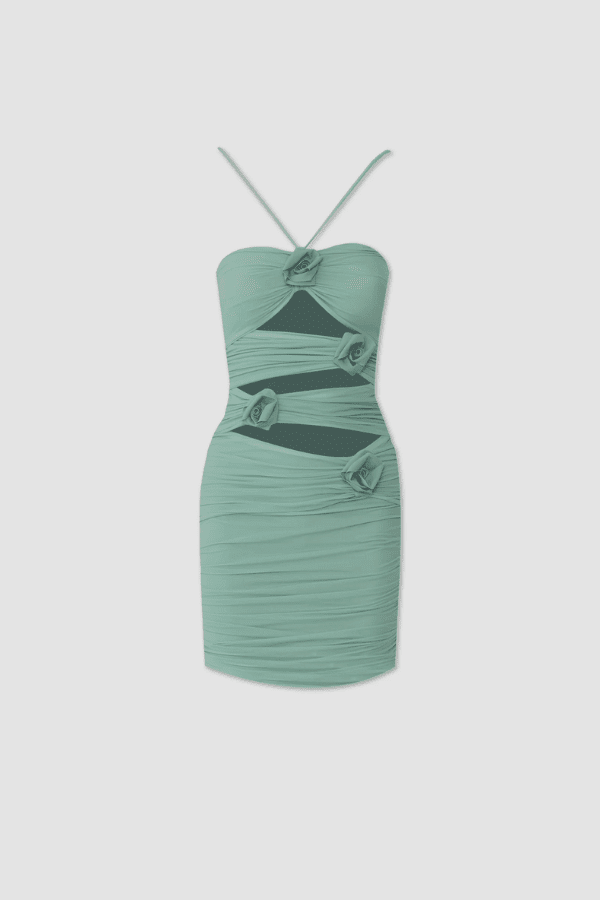 A true representation of the brand¡¯s signature style, the Calia Mini Dress is a ruched halter silhouette that exudes confidence and femininity. Featuring a bold cutout detail and delicate thin adjustable straps, this mini dress is elevated with handmade 3D floral embellishments that bring a romantic, sculptural flair. Designed for versatility and allure, Calia is the ultimate celebration of the female form.