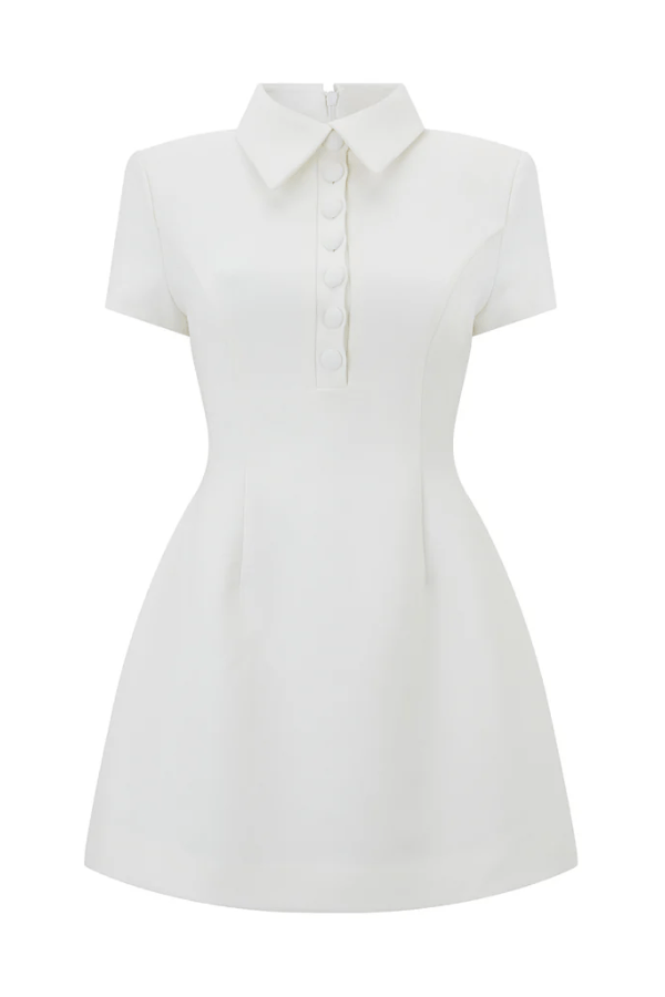 The Ultimate Muse Collared Mini Dress With Volume Skirt White