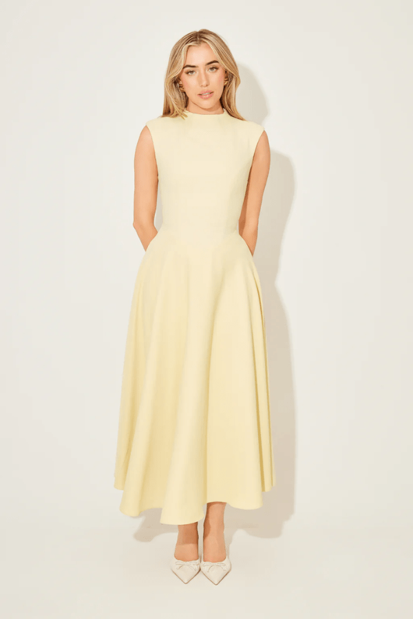 The Ultimate Muse Sleeveless High Waist Midi Dress Lemon